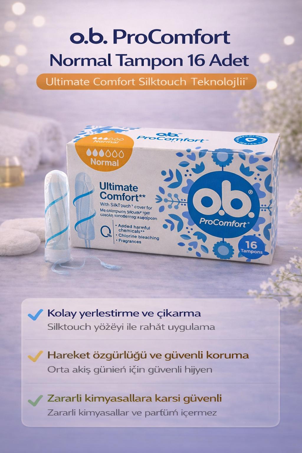 o.b tampon normal, ob procomfort, tampon 16 adet, kadın hijyen ürünü, adet tamponu, hijyenik tampon, silktouch tampon, orta akış tampon, kadın bakım ürünü, ob tampon normal, adet dönemi ürünü, konfor tampon
