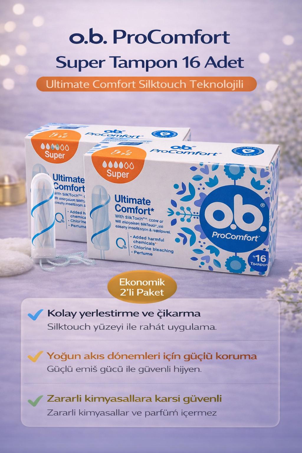 o.b tampon super, ob procomfort super, tampon 16 adet, yoğun akış tampon, kadın hijyen ürünü, adet tamponu, hijyenik tampon, silktouch tampon, konfor tampon, kadın bakım ürünü, ob tampon super, adet dönemi ürünü
