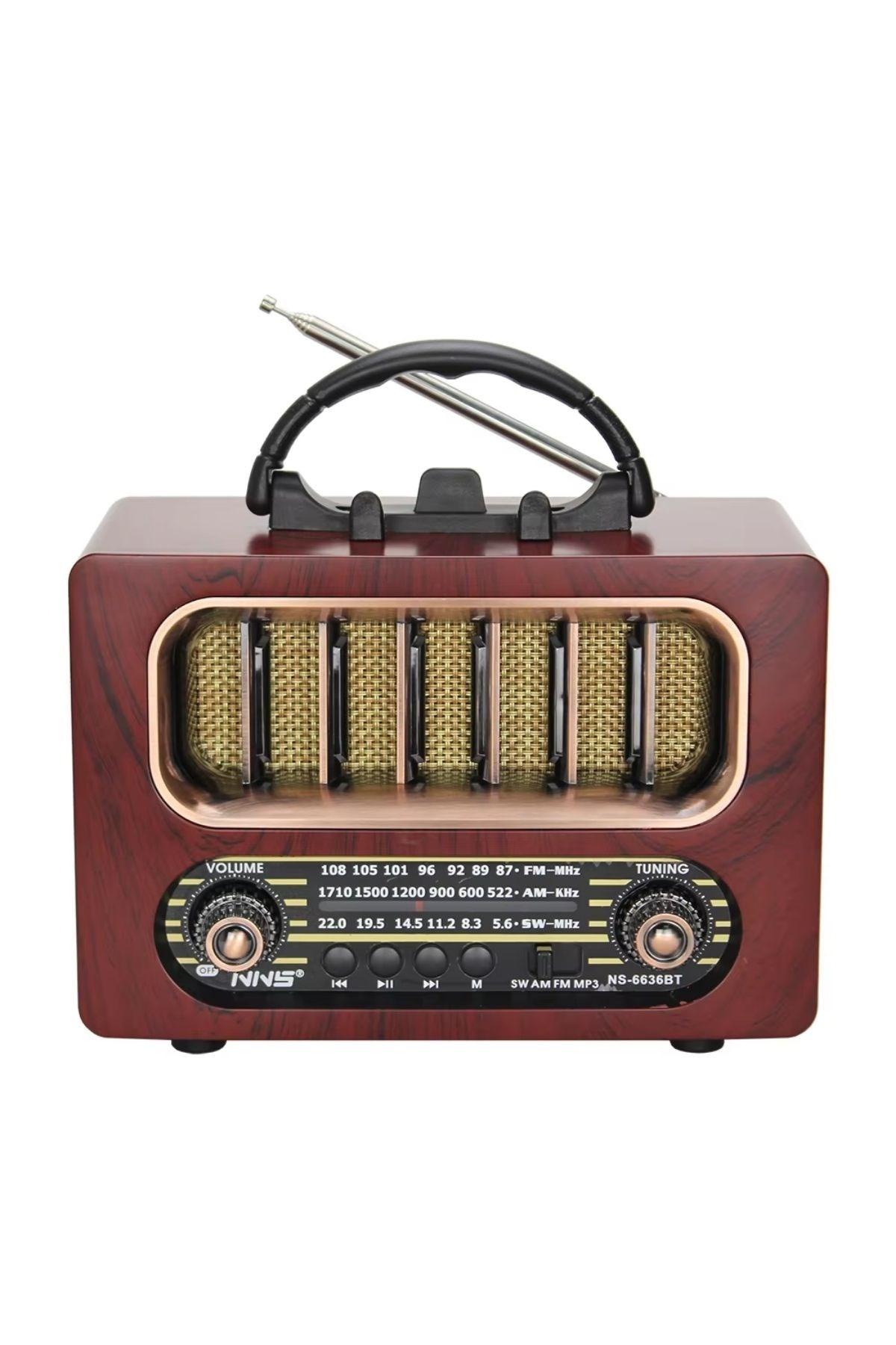 Orta Boy Retro Ahşap Tasarım Bluetooth Hoparlörlü Radyo – FM/AM Destekli, Şarjlı ve Taşınabilir (NS-6636)