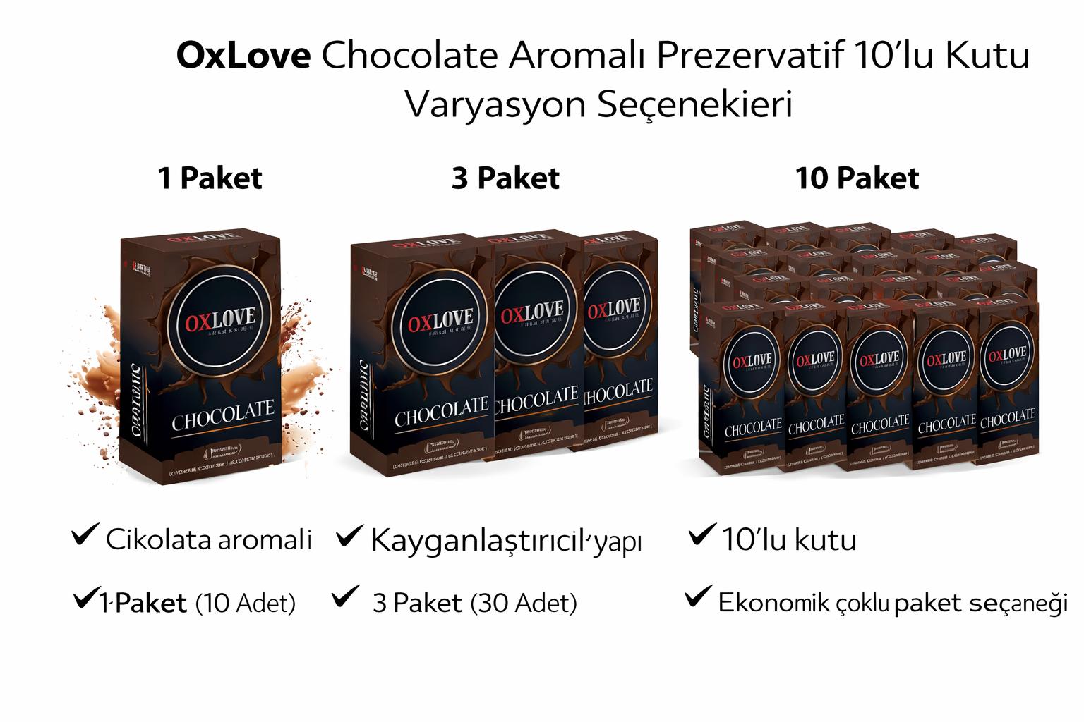 OxLove Chocolate Aromalı Prezervatif 10'lu Kutu 1 Paket 3 Paket 10 Paket Varyasyonlu