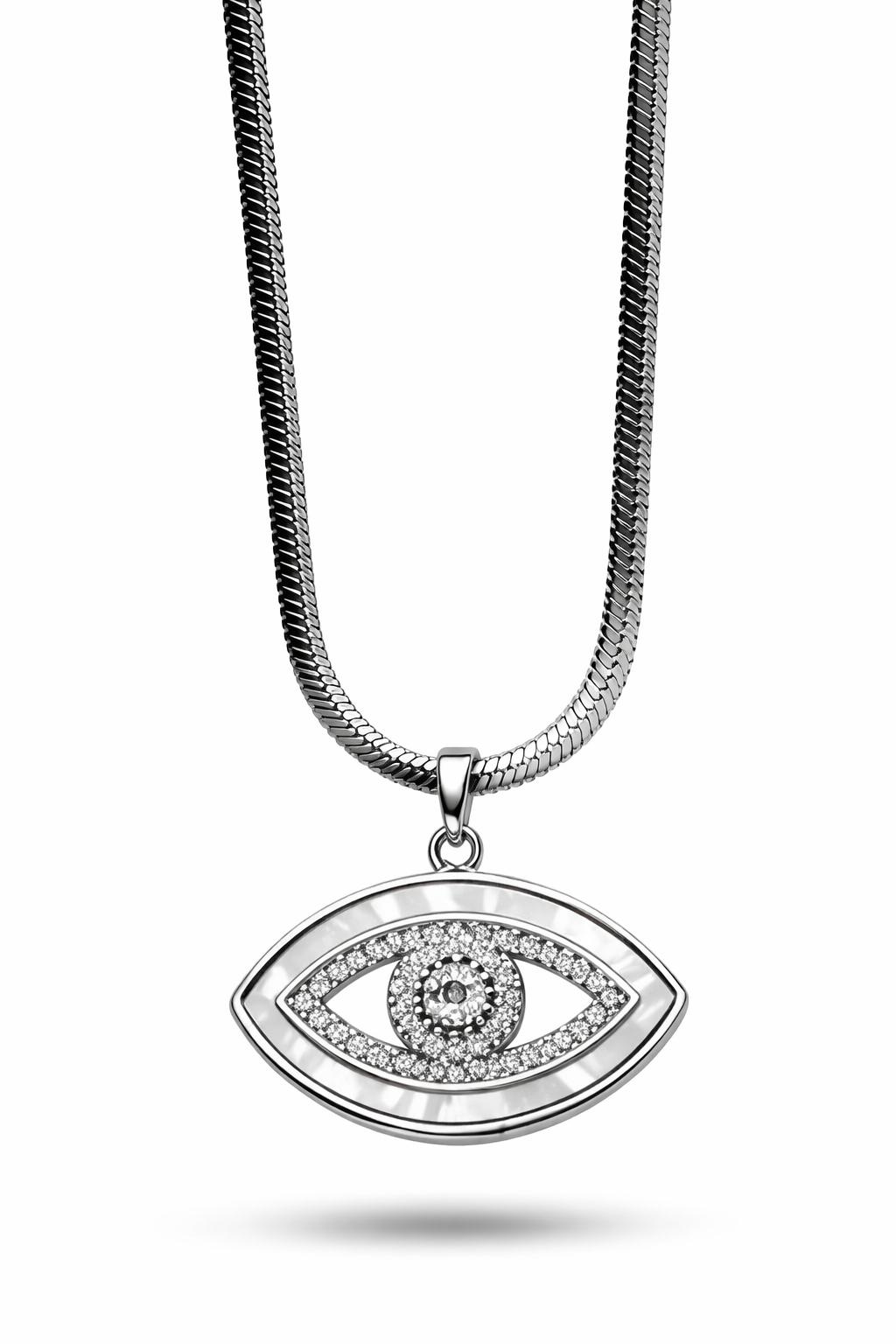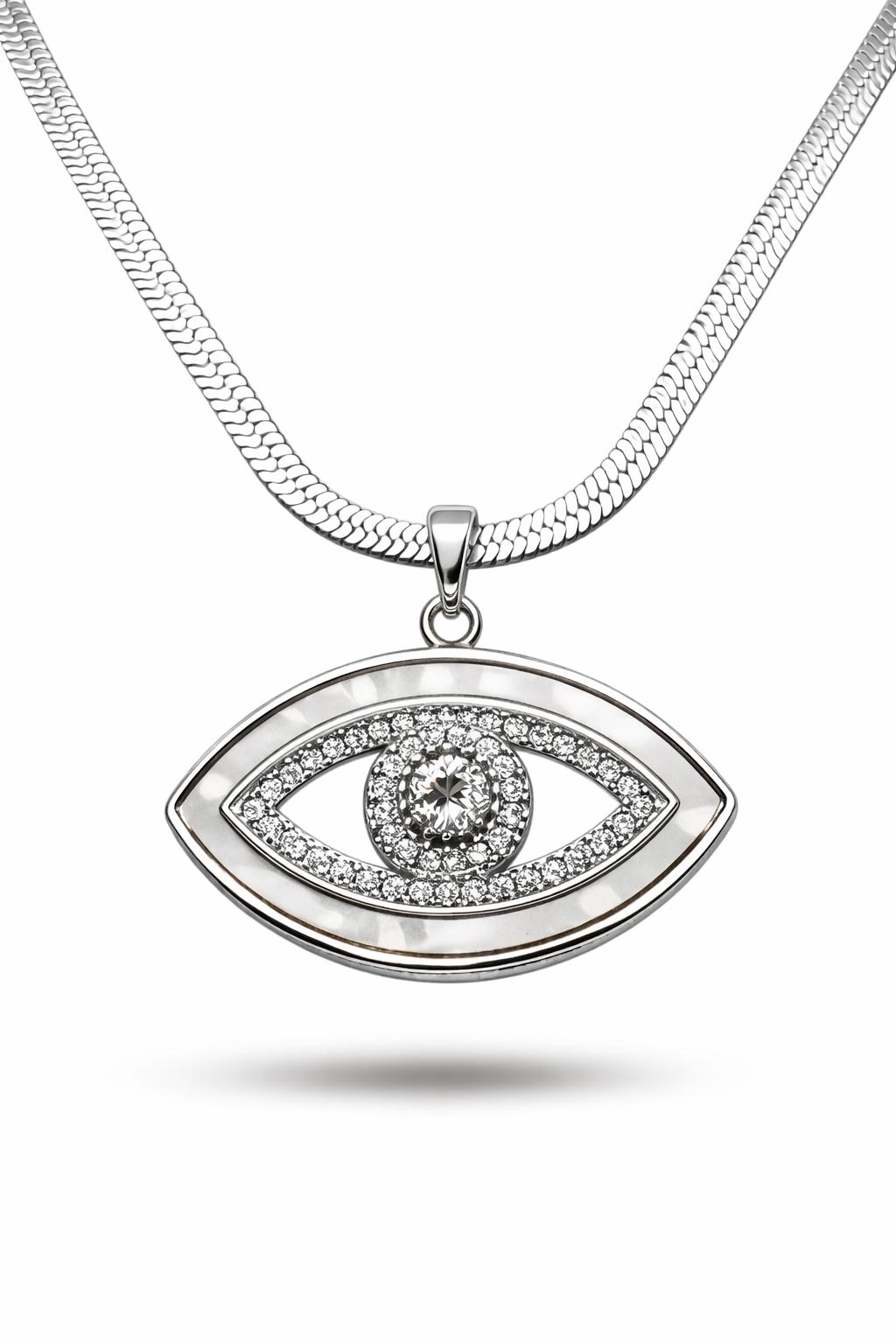 Paslanmaz Çelik Nazar Göz Kolye MODEL 4 – Zirkon Taşlı Parlak Tasarım | Kararmaz Kadın Kolyesi