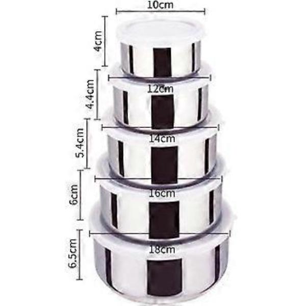 PASLANMAZ ÇELİK YEMEK SAKLAMA KABI SETİÜrün ÖzellikleriYüksek kaliteli paslanmaz çelikten üretilmiştir, uzun ömürlü kullanım sunar ve sağlıklı gıda saklama imkanı sağlar.5 farklı boyutta saklama kabı içerir (10 cm, 12 cm, 14 cm, 16 cm, 18 cm). Gıdaların tazeliğini koruyan ve hava geçirmez kapaklara sahiptir. Gıda saklama, taşıma ve buzdolabında düzen sağlamak için idealdir.Paslanmaz çelik yüzeyi sayesinde kolayca temizlenebilir, hijyenik bir kullanım sağlar. Mutfağınıza şıklık katar. Yemek hazırlığı sonrası artan gıdaların saklanması, meyve, sebze, tahıl ve bakliyat gibi gıdaların düzenli bir şekilde muhafazası, piknik, seyahat veya iş yerinde gıda taşıma için ideal bir saklama kabı setidir. Bu set, hem sağlıklı hem de pratik bir saklama çözümü sunar. Paslanmaz çelik yapısı sayesinde uzun ömürlüdür ve farklı boyut seçenekleriyle her ihtiyaca uygundur.Paket İçeriği1 adet Paslanmaz Çelik Saklama Kabı Seti.