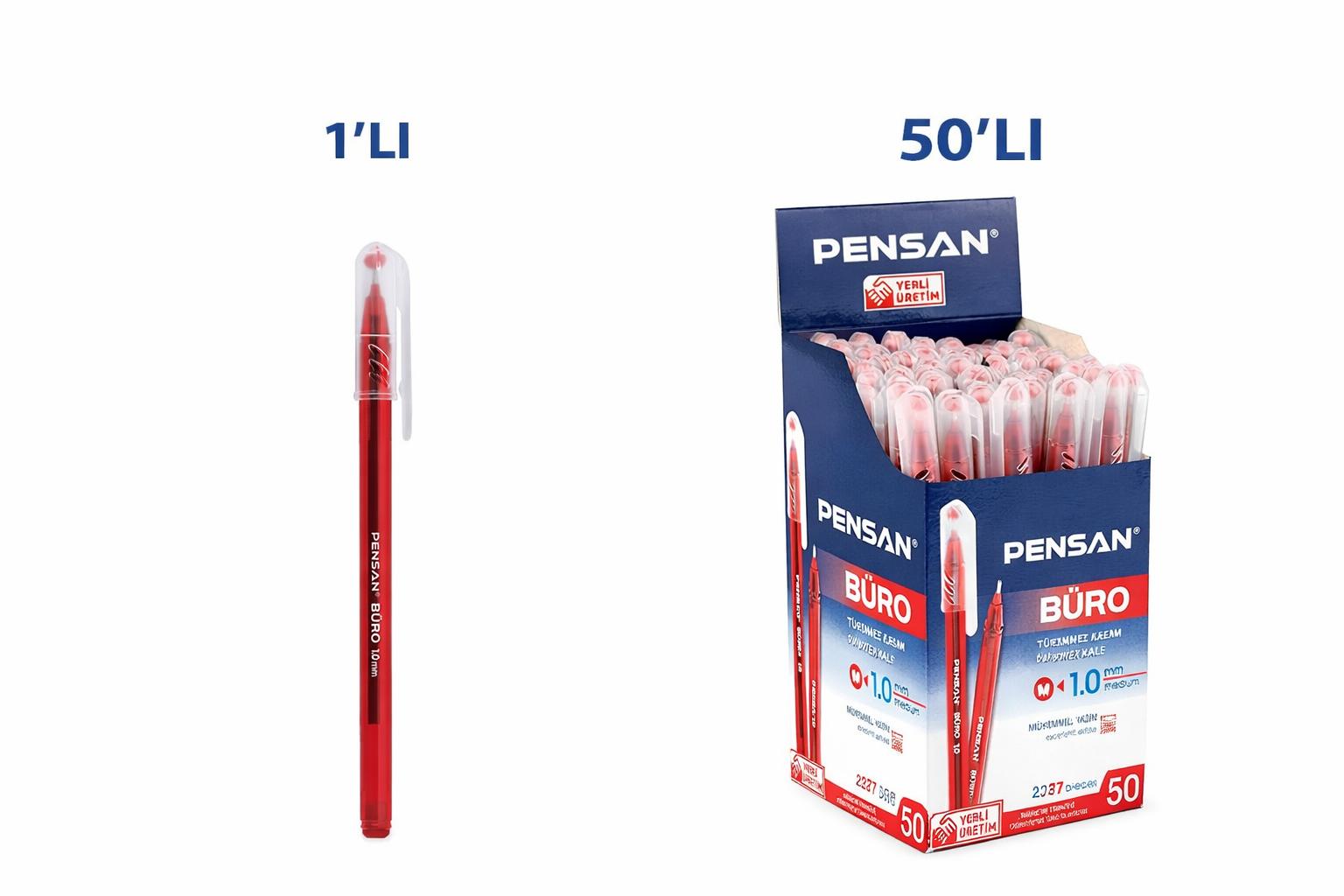 Pensan Büro 2270 Kırmızı Tükenmez Kalem 1.0 mm Medium Yerli Üretim 1 Adet ve 50 Adet Paket Seçenekli