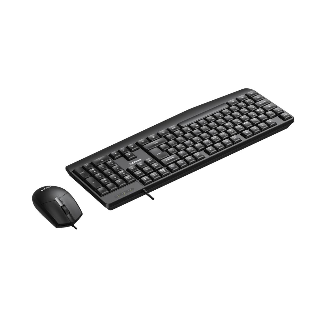 Philips 2000 serisi klavye-fare seti, günlük kullanım ve güvenilir dayanıklılık için ergonomik ve sıçramaya karşı dayanıklı tasarıma sahiptir. Optik fare, ergonomik ve hassas kontrol sağlar.