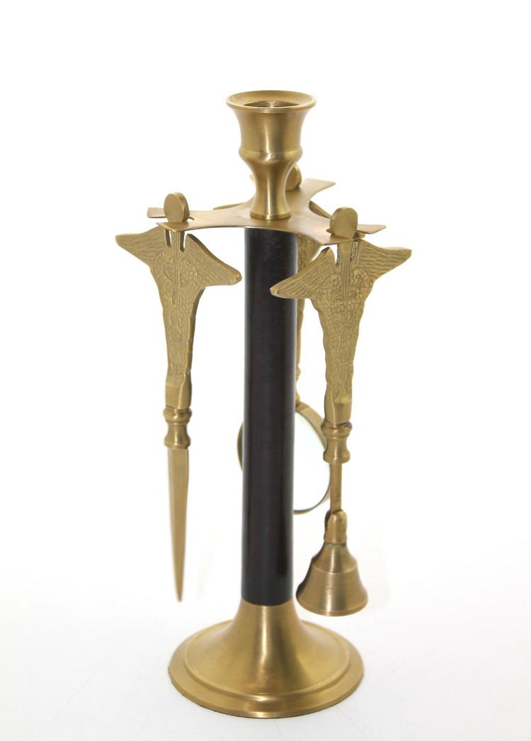 Pirinç masa seti, zarif bir tasarıma sahip şık bir ofis veya ev dekorasyon ürünüdür. Pirinç ve siyah ahşap malzeme kullanılarak üretilmiş olan bu masa seti, dikkatlice işlenmiş iki kanatlı figürle öne çıkar. Figürlerin zarif tasarımı, setin genel estetik bütünlüğüne katkı sağlar. Hem fonksiyonel hem de dekoratif olan bu set, masa üzeri aksesuar olarak kullanılabilir.