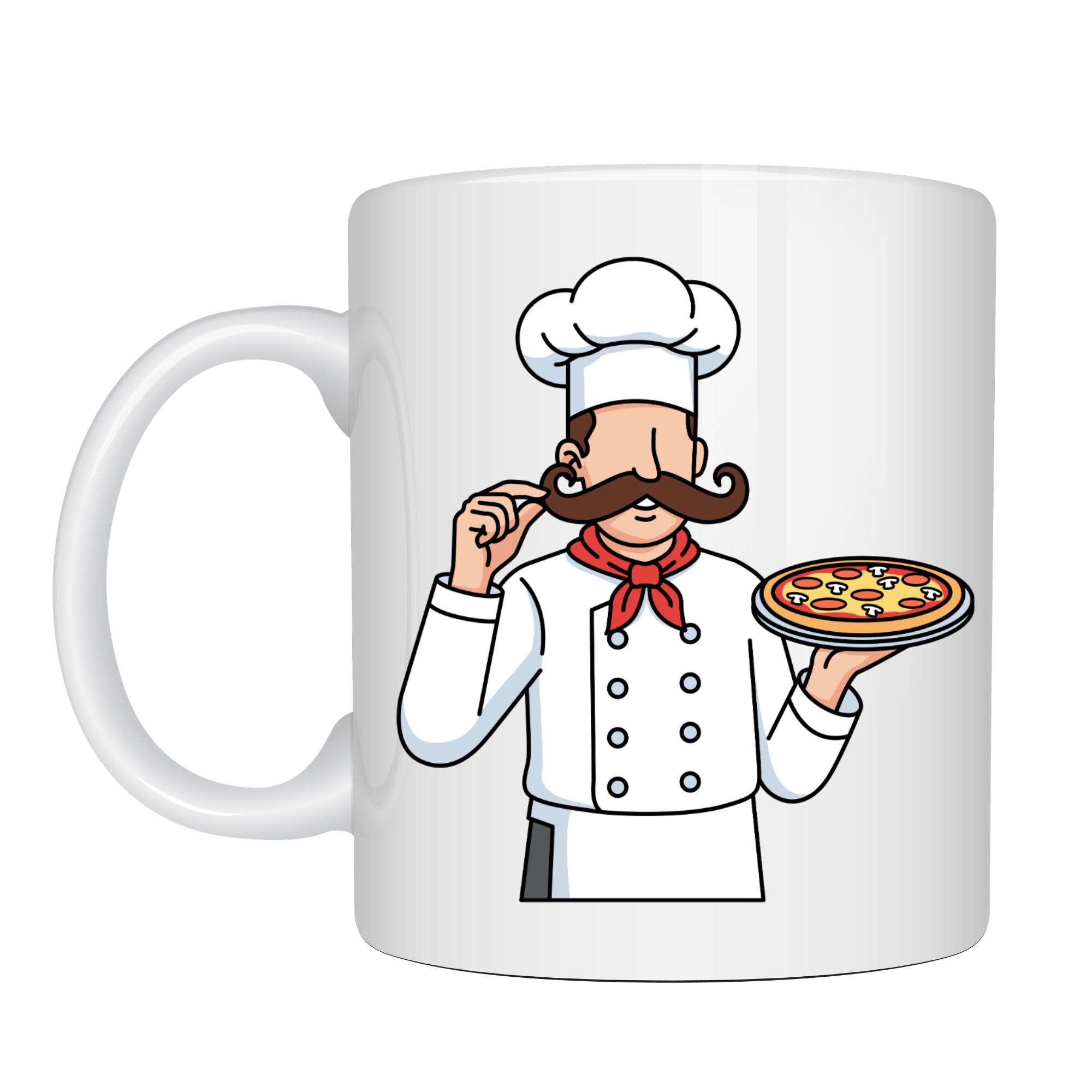 Pizza Ustası Tasarımlı Porselen Kupa MODEL 165 – Aşçı Temalı Kahve Kupası – Pizza Sevenlere Hediye – Şef Desenli Beyaz Kupa