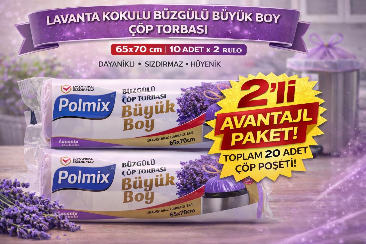 lavanta kokulu çöp torbası, polmix çöp torbası, büyük boy çöp poşeti, büzgülü çöp torbası, 65x70 çöp torbası, dayanıklı çöp poşeti, sızdırmaz çöp torbası, kokulu çöp torbası, lavanta kokulu poşet, mutfak çöp torbası, hijyenik çöp poşeti, büyük boy çöp torbası 10 adet