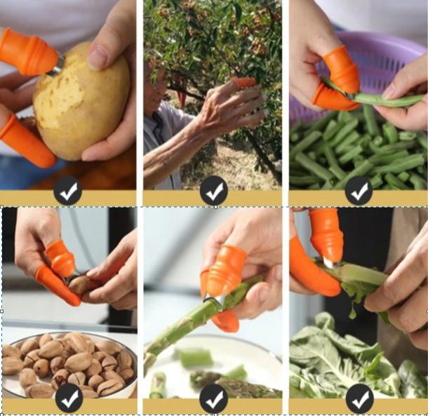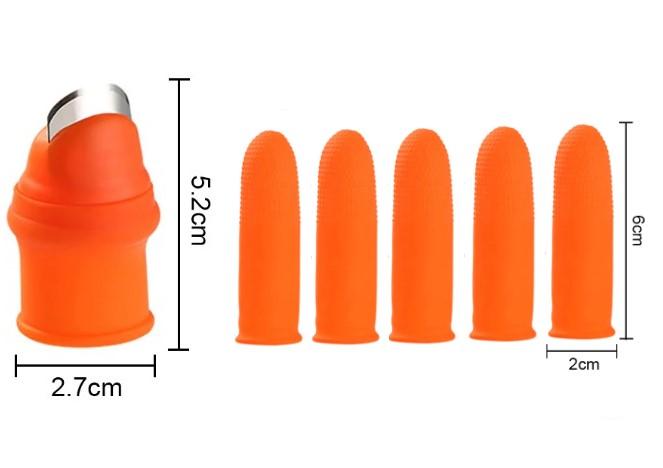 Baş parmak koruyucu soyucu ayıklayıcı kesme eldiveni bahçede, mutfakta sebze meyveleri soymak için kullanılır.Bahçe işlerinizde meyve sebze koparırken parmaklarınızı korur ve kesip koparmanıza yardımcı olurMutfakta sarımsak, sebze ve benzerlerini soymak için kullanılırGiyilebilir kısmı kaliteli silikon malzemeden üretilmiştirL Beden Set Boyutlar: 3.1*5.2*2.4cm Baş Parmak6cm * 2cm 5 Adet Orta Parmak