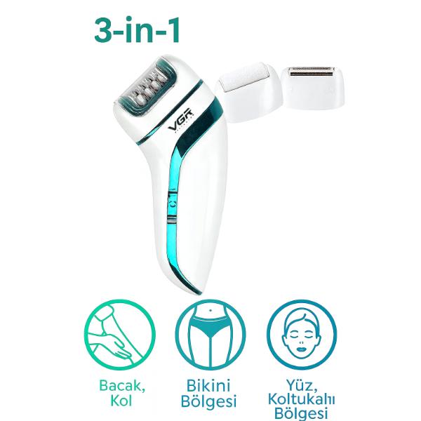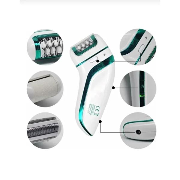 Profesyonel 3 Başlıklı Epilasyon Aleti, farklı bölgeler için özel olarak tasarlanmış üç farklı başlığı sayesinde pratik ve etkili bir kullanım sunar. Yüz, bacak, koltuk altı, bikini bölgesi ve hassas bölgelerde kullanılabilir. Döner epilasyon başlığı istenmeyen tüyleri kökünden alarak pürüzsüz bir cilt sağlar. Tıraş başlığı hızlı ve kolay kullanım için idealdir, topuk törpü başlığı ise ayak bakımında etkili sonuç verir. Ergonomik tasarımı sayesinde elde rahat kavrama sağlar ve uzun süreli kullanımda bile konfor sunar. Şarjlı yapısıyla kablo karmaşası olmadan pratik kullanım imkânı sunar.