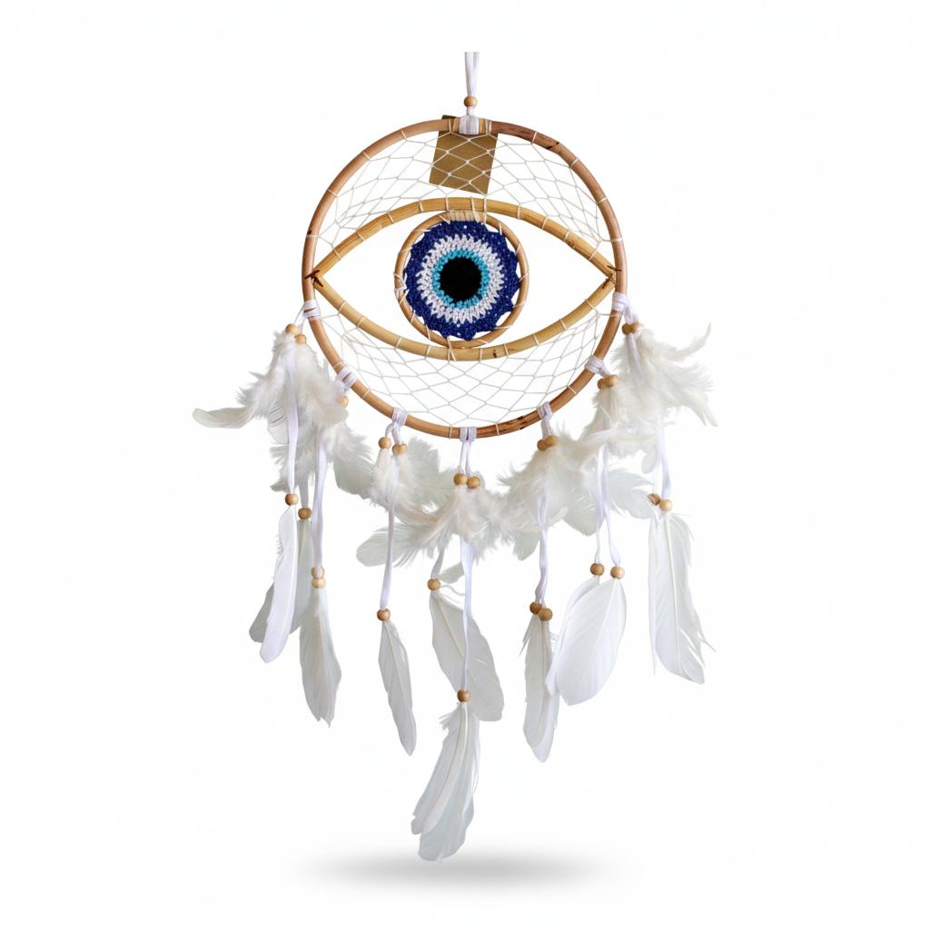 Rüya Kapanı Dream Catcher Model 21Ürün İçeriğiRüya Kapanı Dream Catcher Model 21, kadim bir geleneği mistik bir koruma sembolüyle birleştiriyor. Merkezinde yer alan göz tasarımı ve özenle işlenmiş nazar boncuğu detayları, kötü enerjilere karşı bir kalkan oluştururken, yumuşak beyaz tüyleriyle mekanınıza dinginlik ve ferahlık katar. Sadece bir dekorasyon objesi değil, aynı zamanda huzurlu uykuların ve pozitif enerjinin sembolü olarak tasarlanmıştır.Ürün ÖzellikleriÖzellikAçıklamaModelModel 21TasarımGöz Figürlü ve Nazar Boncuğu DetaylıMateryalDoğal Tüyler, İşleme İpler ve Dekoratif BoncuklarRenkBeyaz ve Mistik Mavi TonlarıTemaKoruma (Nazar) ve HuzurKullanım AlanıYatak Odası, Bebek Odası, Balkon ve Duvar DekoruYapıHafif ve Kolay Asılabilir TasarımPaket İçeriği1 Adet Rüya Kapanı Dream Catcher Model 21