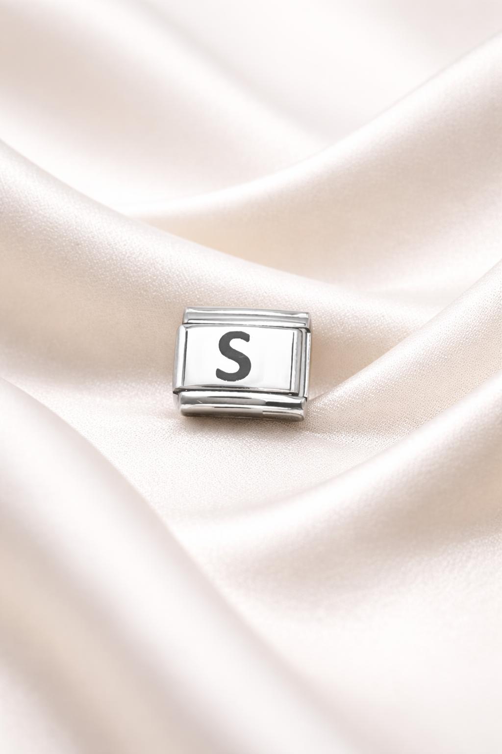 Parlak yüzeyi ve net harf baskısı ile öne çıkan bu charm, paslanmaz çelik yapısı sayesinde uzun ömürlüdür ve kararma yapmaz. İsminizin baş harfi, sevdiğiniz birinin harfi ya da size özel bir anlam taşıyan “S” ile bilekliğinizi tamamen size özel hale getirebilirsiniz.