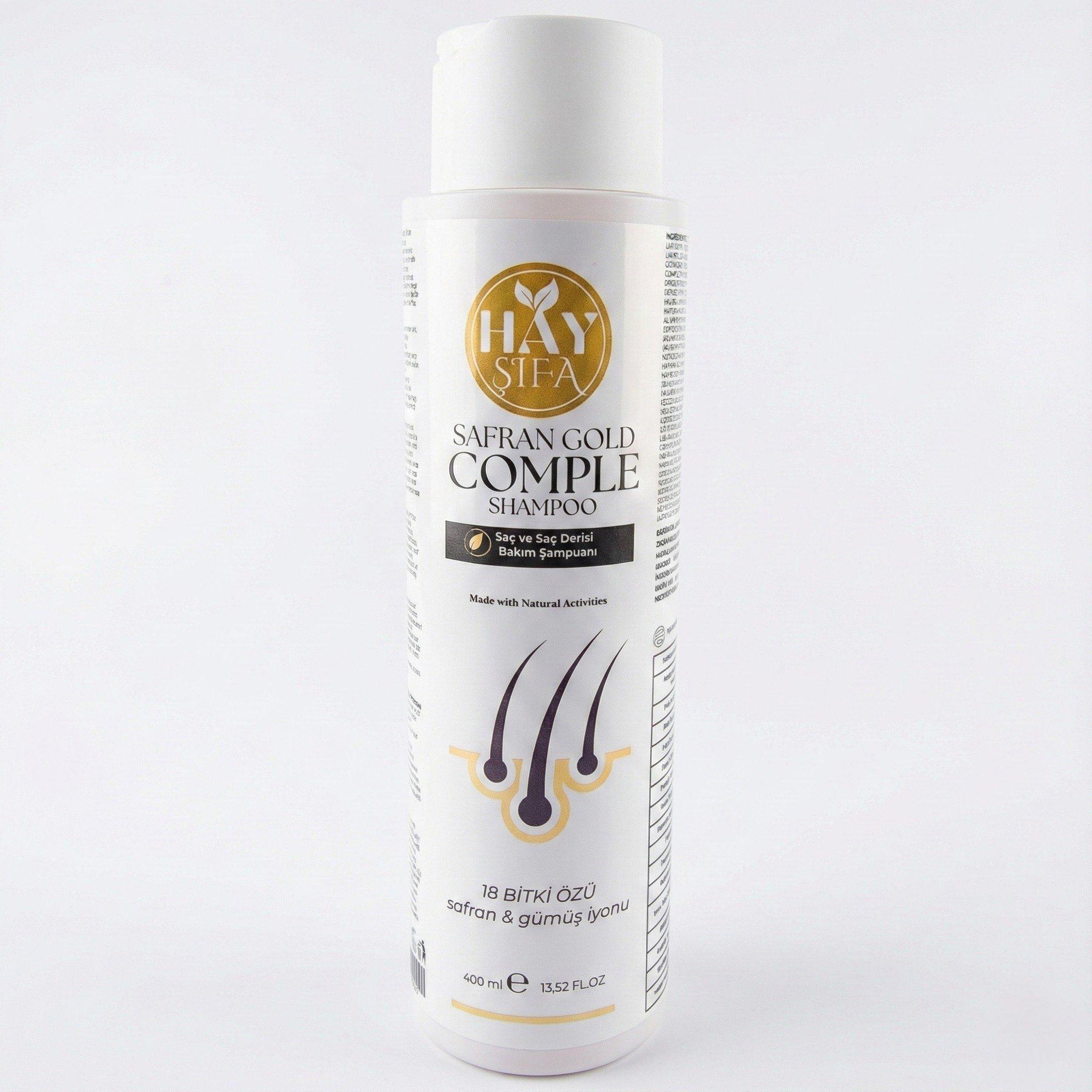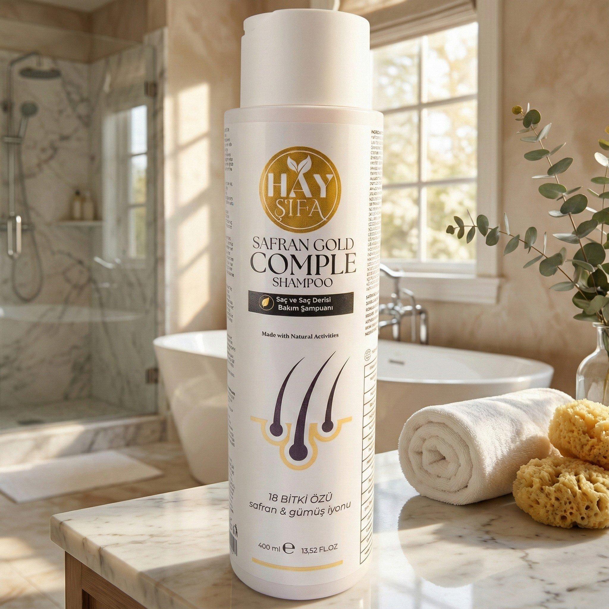 Hay Şifa Safran Gold Complete Şampuan, safran çiçeği özü ve gümüş iyonu ile formüle edilmiş, bitkisel içeriklerle zenginleştirilmiş özel bir saç bakım ürünüdür. İçeriğinde yer alan keratin, biotin ve E vitamini ile desteklenen formülü, saç temizliği ve bakım rutininiz için dengeli bir kullanım sunar.