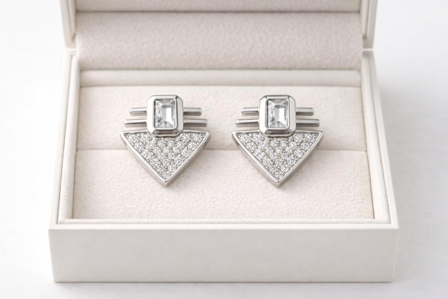 Serenay Küpe MODEL 10 – Şeffaf Taşlı Geometrik Zirkon Detaylı Gümüş Renk Çelik Küpe, Kararma Yapmaz