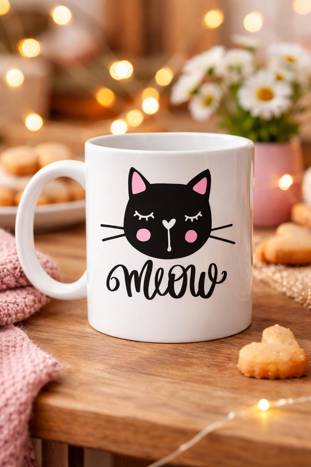 Kupanın üzerindeki uykulu ve huzurlu kedi figürü, sakinliği, sevimliliği ve ev sıcaklığını temsil eder. “Meow” yazısı ise kedilerin tatlı miyavlamasından ilham alarak kupaya eğlenceli ve samimi bir hava katar. Özellikle kedi severlerin kalbini çalacak bu tasarım, kahve ve çay molalarını daha keyifli hale getirir. ???