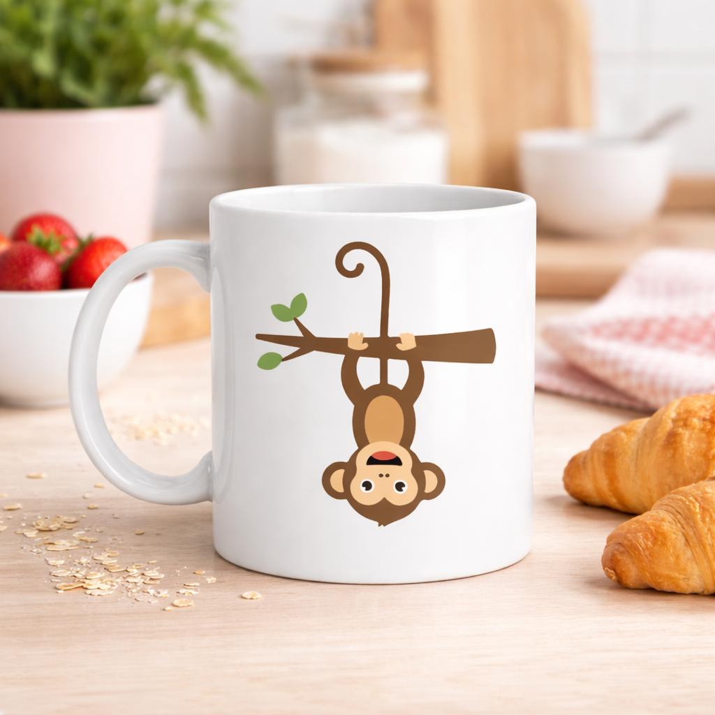 Bu sevimli maymun desenli porselen kupa, dalından sarkarak bakan tatlı maymun figürüyle hem eğlenceli hem de iç ısıtan bir tasarıma sahip.