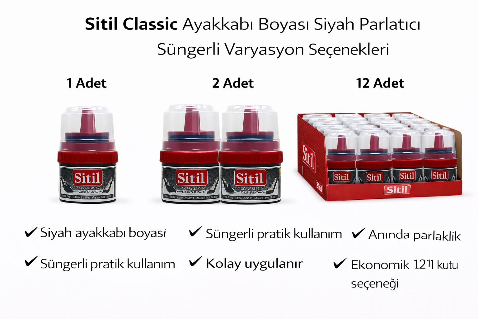 Sitil Classic Ayakkabı Boyası Siyah Parlatıcı Süngerli 1 Adet 2 Adet 12 Adet Varyasyonlu