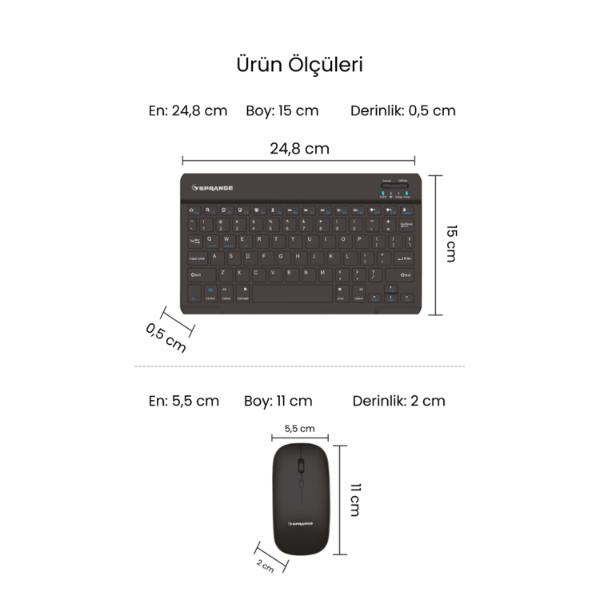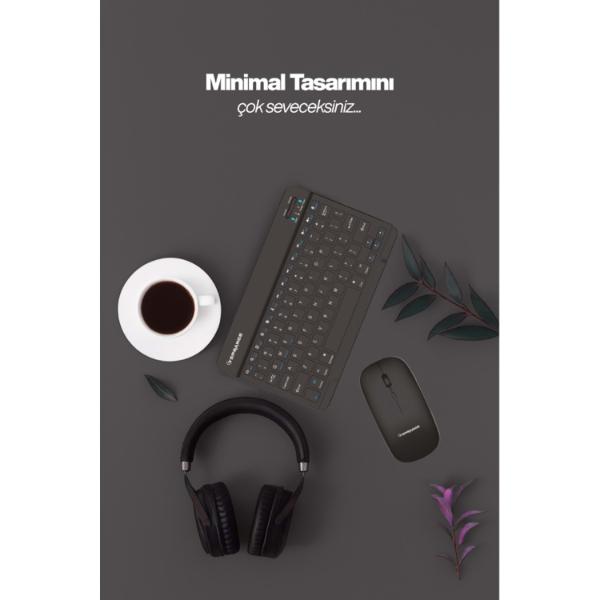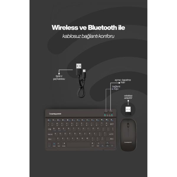 SİYAH KABLOSUZ KLAVYE VE MOUSE SETİÜrün ÖzellikleriSiyah Kablosuz Klavye ve Mouse Seti, modern ve sade tasarımıyla bilgisayar, telefon ve tablet gibi birçok cihaza uyum sağlayan pratik bir kullanım sunar. Multimedya özellikli Türkçe Q klavyesi hızlı ve rahat yazım deneyimi sağlarken kablosuz bağlantı teknolojisi çalışma alanında özgür hareket imkânı tanır. Hem klavye hem de mouse üzerinde bulunan Type-C şarj girişi sayesinde hızlı ve güvenilir şarj kolaylığı sunar. Hafif ve ince yapısı taşımayı kolaylaştırırken ergonomik mouse tasarımı uzun süreli kullanımda bile konfor sağlar. Günlük kullanım veya ofis ortamı için ideal olan bu set, verimliliği artıran fonksiyonel bir çözüm sunar.Paket İçeriği1 Adet Siyah Kablosuz Klavye Ve Mouse Seti