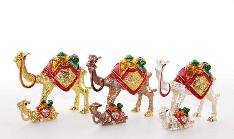 SWAROVSKİ YAVRULU DEVE MODEL 3Ürün ÖzellikleriSwarovski Yavrulu Deve Model 3, 7x9 cm boyutunda olup zarif ve otantik tasarımıyla dekoratif aksesuar olarak öne çıkar. Swarovski taşlarla süslenmiş detayları, metal gövde ve emaye kaplama ile tamamlanarak estetik bir görünüm sunar. Yavrulu deve figürü, koleksiyonluk bir obje olarak vitrin, masa ve raf dekorasyonlarında şık bir dokunuş sağlar. Hem hediyelik hem de otantik koleksiyon parçaları sevenler için ideal bir seçenektir.Paket İçeriği1 Adet Swarovski Yavrulu Deve