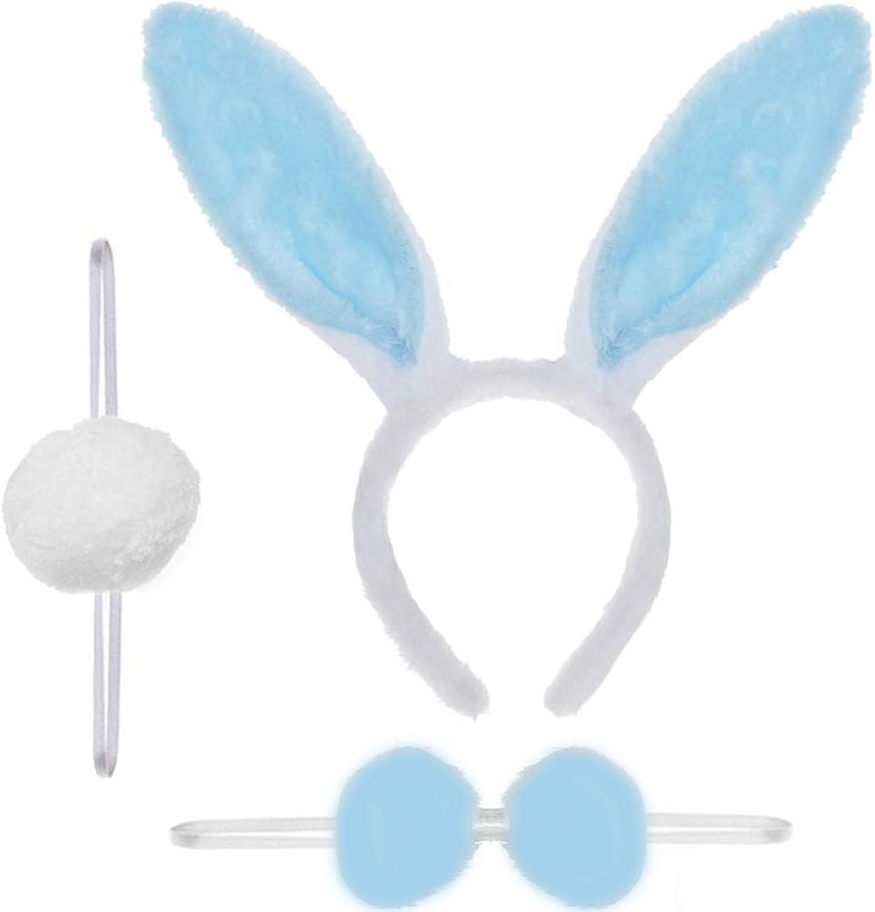 1 Adet Mavi Tavşan Kostüm Seti (Taç, Papyon, Ponpon, Kuyruk)
