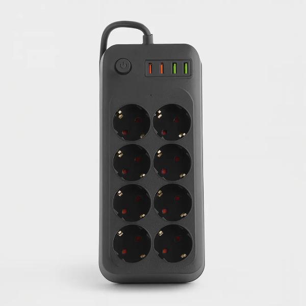 Değerli elektronik cihazlarınızı güvence altına alın! Termal Akım Korumalı 8 Prizli Uzatma Kablosu, yüksek teknolojili koruma sistemleri ile hem evinizde hem de ofisinizde güvenli bir enerji istasyonu kurmanızı sağlar. 8 adet AC priz girişinin yanı sıra üzerinde yer alan 4 adet USB girişi, akıllı telefon ve tabletlerinizi adaptör gerektirmeden şarj etmenize olanak tanır. Akıllı telefon tanıma (IQ) teknolojisi sayesinde cihazınıza uygun akımı otomatik olarak belirleyerek pil sağlığını korur. Termal akım koruması ve kısa devre koruması özellikleri, ani voltaj dalgalanmalarında ve aşırı yüklenmelerde elektriği keserek cihazlarınızın zarar görmesini engeller. 2 metre uzunluğundaki yüksek akım dirençli kablosu ve gerçek bakır iletkenleri ile maksimum verimlilik sunan bu ürün, yüksek ısıya dayanıklı gövde yapısı sayesinde uzun ömürlü ve güvenilir bir kullanım vaat eder.