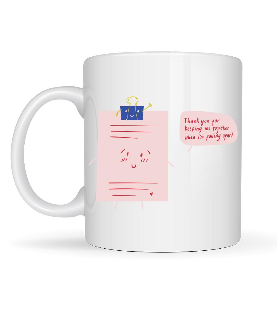 Üzerindeki sevimli not figürü ve “Thank you for keeping me together when I’m falling apart” yazısı;