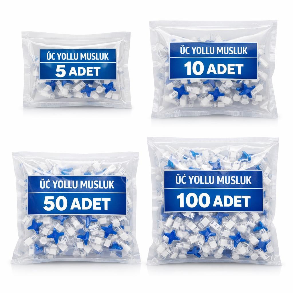 üç yollu musluk, medikal üç yollu musluk, steril üç yollu musluk, serum bağlantı aparatı, sıvı akış kontrol musluğu, medikal musluk bağlantı, üçlü musluk, üç yollu musluk 5 adet, üç yollu musluk 10 adet, üç yollu musluk 50 adet, üç yollu musluk 100 adet, hastane tipi üç yollu musluk