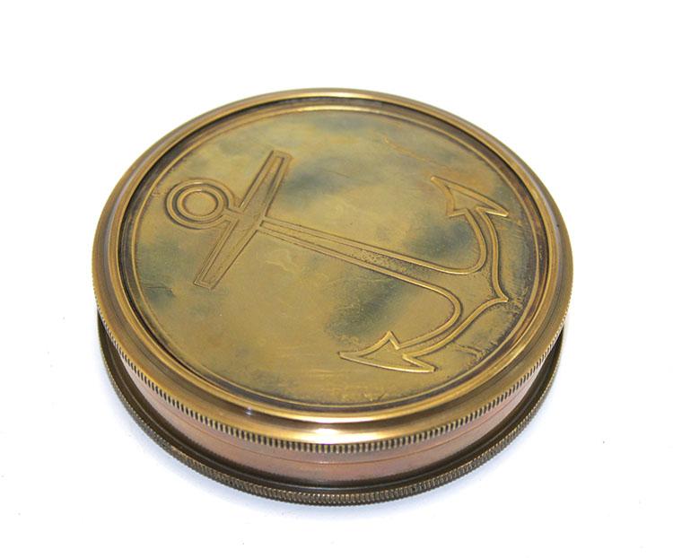 Üzeri çapa işlemeli şık bir tasarıma sahip olan bu pirinç pusula, antika tarzında tasarlanmıştr. Pusula, kullanışlı bir navigasyon aracı olmanın yanı sıra dekoratif bir obje olarak da kullanılabilir. Antika görünümü ve kaliteli işçiliğiyle, denizci temalı dekorasyonlarda veya koleksiyonlarda harika bir ek olacaktır.