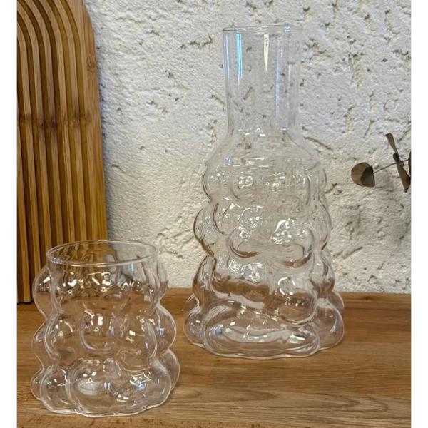 Üzüm desenli başucu sürahisi, şeffaf camdan üretilmiştir ve şık tasarımıyla her ortamda dikkat çeker. Hem dekoratif hem de fonksiyonel olan bu sürahi ve bardağı özellikle yemek masalarında ya da başucunda kullanılmak için idealdir. Üzüm desenleri, ürünün zarif bir görünüme sahip olmasını sağlar. İster soğuk ister sıcak içecekler için kullanılabilir.