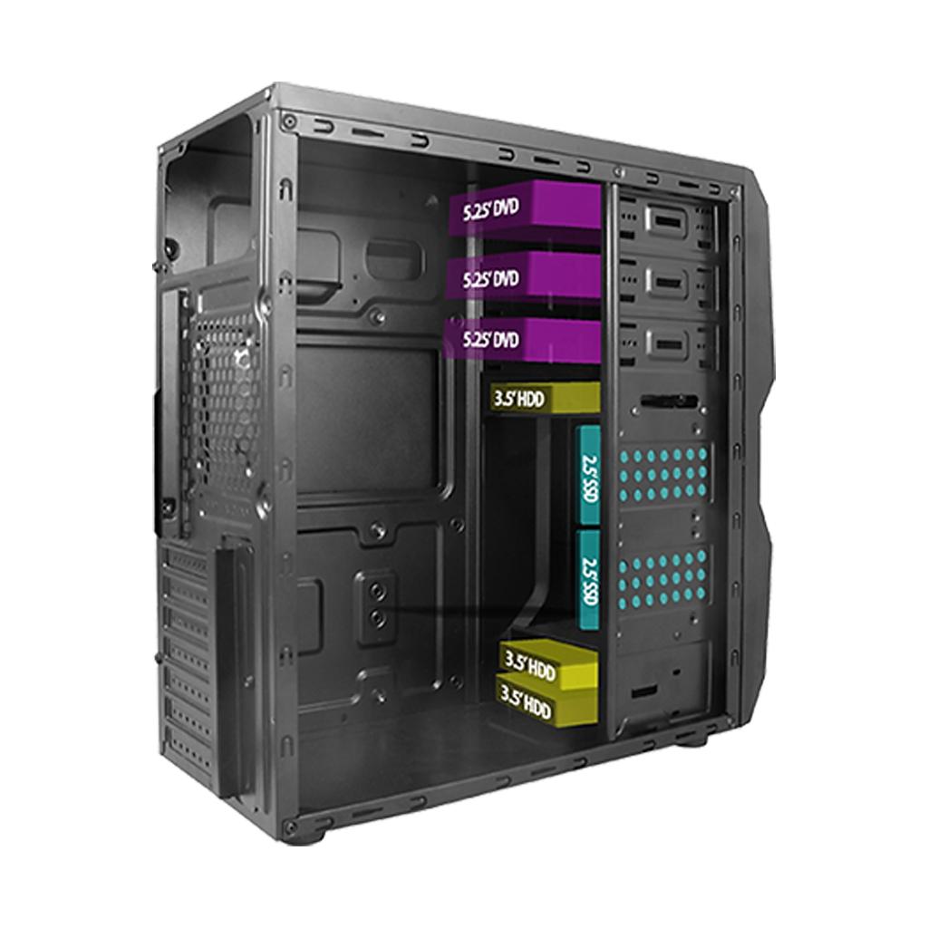 Geniş AlanVento TA-K61 kasa , 7 adet genişleme yuvasının yanı sıra ATX, Micro ATX ve Mini ITX anakart ve 150mm’ye kadar işlemci soğutucu desteği ile kurulumunuz için size geniş alan sunar.
