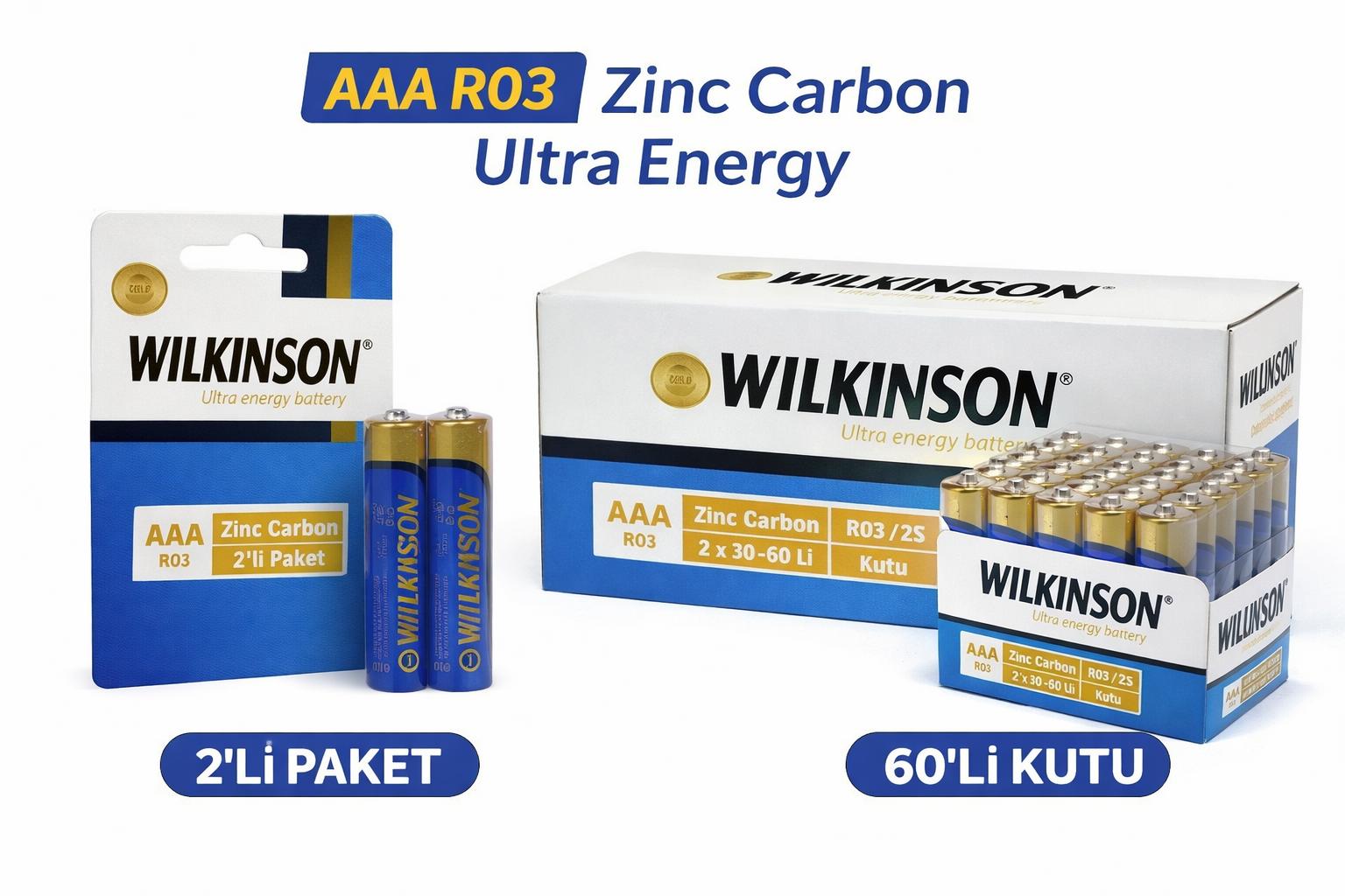 Wilkinson AAA R03 İnce Pil Zinc Carbon Ultra Energy 2’li ve 2x30=60’lı Kutu Seçenekli