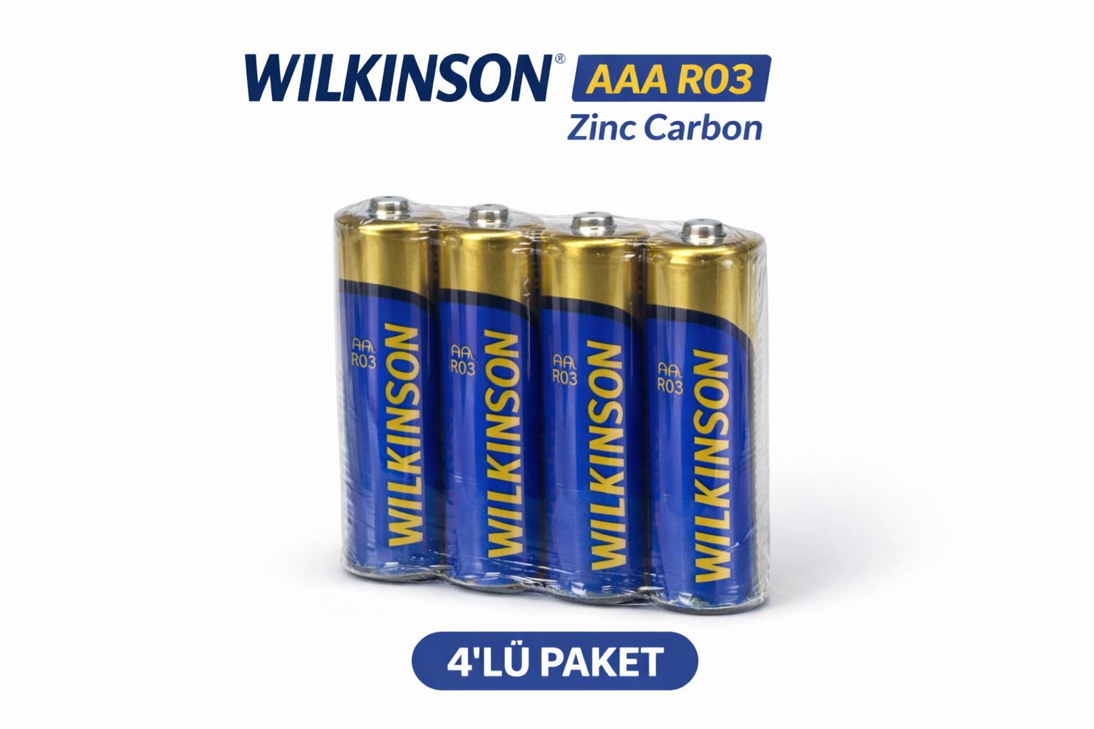 Wilkinson AAA R03 Zinc Carbon Ultra Energy İnce Kalem Pil, günlük kullanım için ekonomik ve güvenilir enerji çözümü sunar. Uzaktan kumanda, saat, oyuncak, el feneri, klavye, mouse ve benzeri düşük enerji tüketimli cihazlar için idealdir.