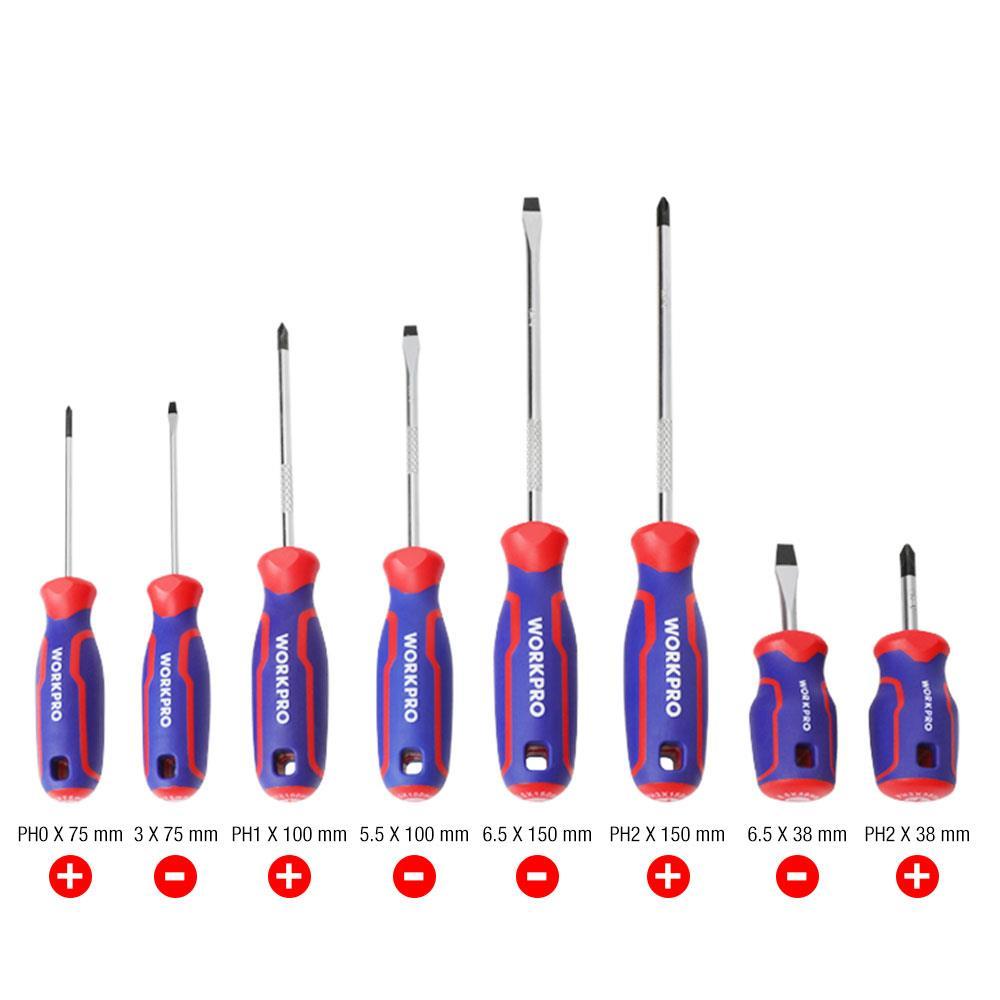 • WORKPRO WP200505 8 Parça Profesyonel CR-V Manyetik Tornavida Seti