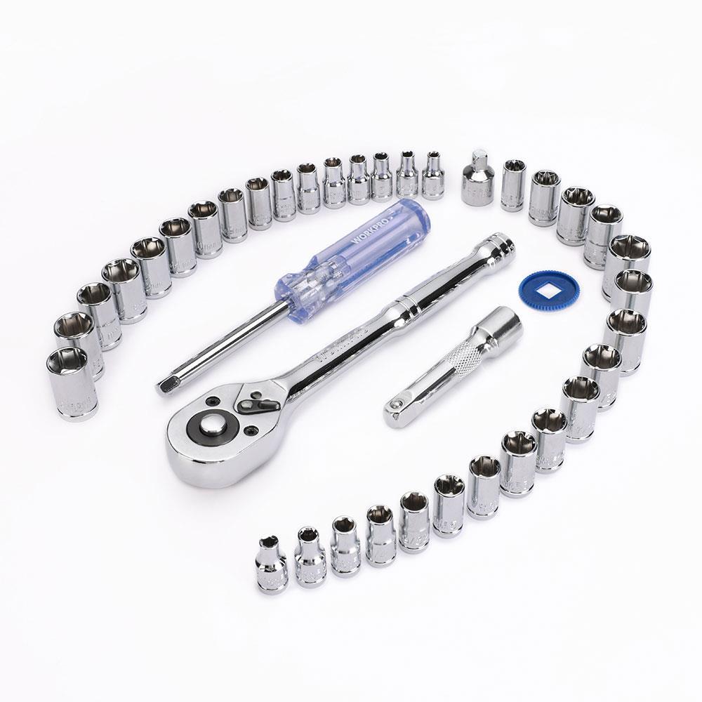 • WORKPRO WP202536 39 Parça 3/8’’ 1/4’’ CR-V Metrik/İnç Profesyonel Lokma Takımı