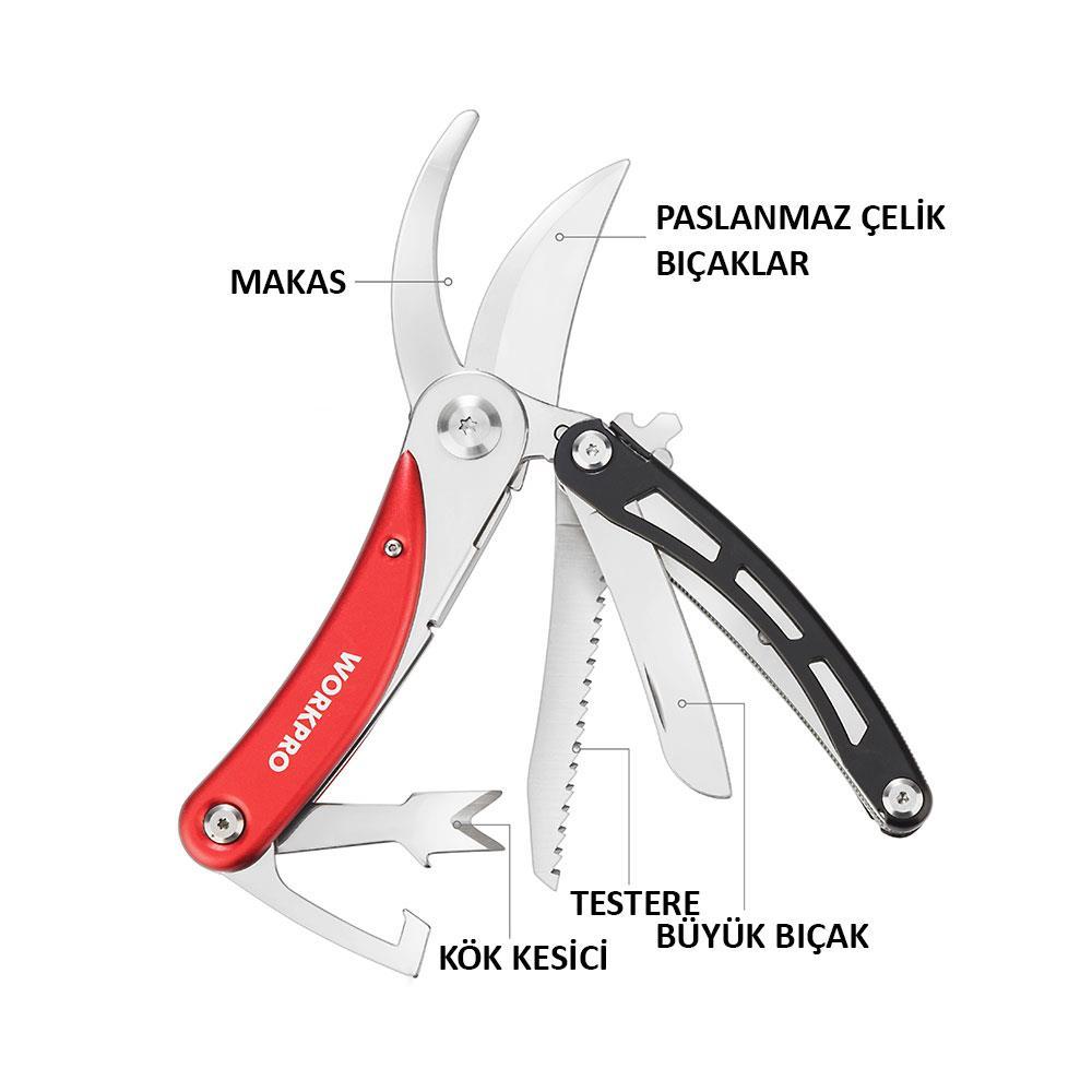 • WORKPRO WP382005 4 IN 1 Çok Fonksiyonlu Bağ Bahçe Dal Budama Makası