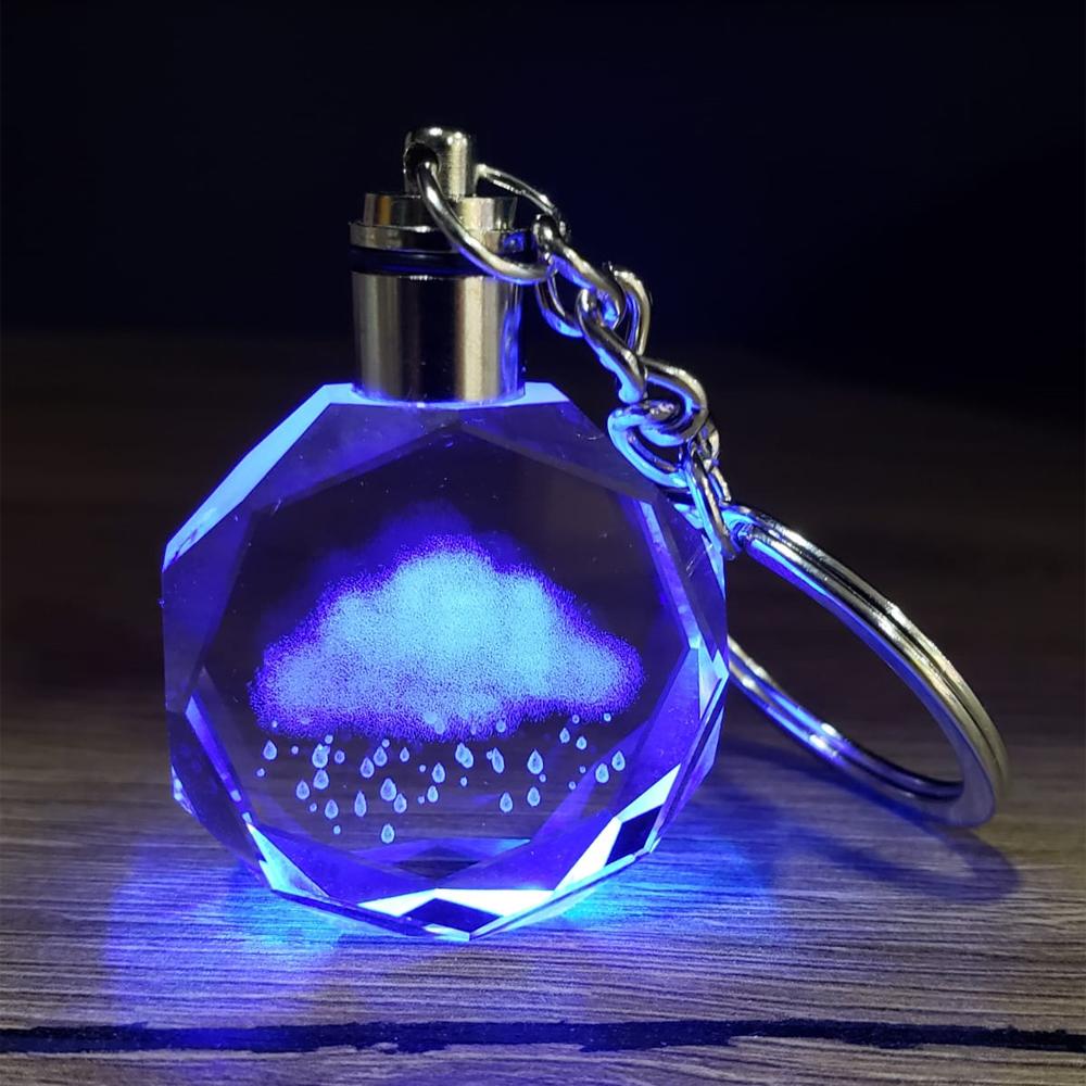 Özel günler için mükemmel bir hediye alternatifi olan renk değiştiren ışıklı kristal anahtarlık, tasarımı ve görünümü ile trend anahtarlık çeşitlerinden biridir. Kristalin içinde bulunan yağmur bulutu motifi, anahtarlığa farklı bir görünüm katar ve dikkatleri üzerine çeker. Karanlıkta yakıldığında anahtarlık renk değiştirmeye başlar ve hoş bir görüntü oluşturur. Işıklı kristal anahtarlık, son zamanların en dikkat çekici aksesuarlarından biridir. Kaliteli kristal cam malzemeden üretilmiş olan bu anahtarlık, pil ile çalışır ve 10 cm boyutundadır. Anahtarlık çevrildiğinde ışığı yanar ve karanlıkta estetik bir görünüm sunar.