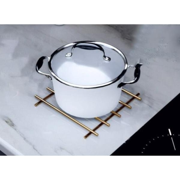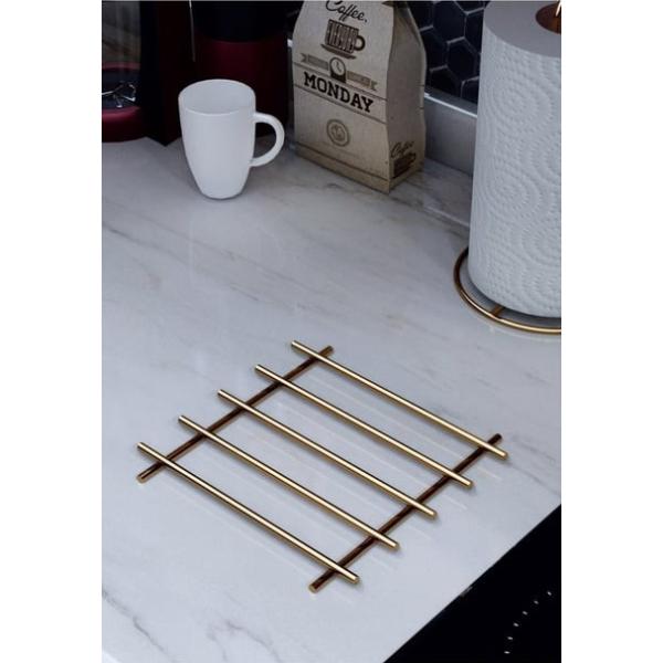 Şık gold rengi ve dayanıklı paslanmaz çelik malzemesi ile üretilen bu yanmaz nihale, mutfaklarda hem estetik hem de işlevsel bir çözüm sunar. 20x20 cm ölçülerindeki kare formu sayesinde geniş tencere ve tavalar için yeterli alan sağlar. Yüksek ısıya dayanıklı yapısıyla sıcak mutfak ekipmanlarını doğrudan tezgaha koymadan önce güvenle kullanabilirsiniz. Kaymaz silikon ayakları sayesinde tezgah yüzeyini korur ve kaymaları önler. Modern ve zarif görünümüyle mutfağınıza zarafet katar. Hem günlük kullanımda hem de misafir ağırlarken pratiklik sağlar.