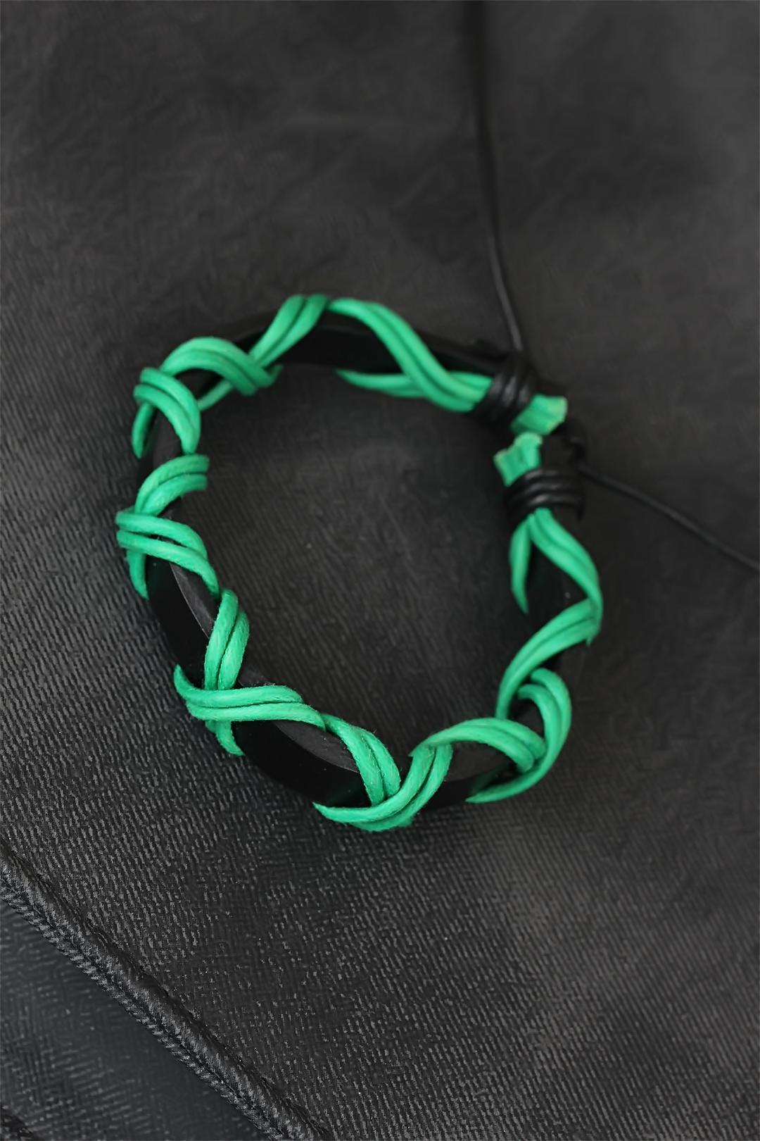 Dikkat çeken tarzınız için Yeşil İpli Siyah Renk Deri Erkek Bileklik modeli doğru bir seçim olacak.