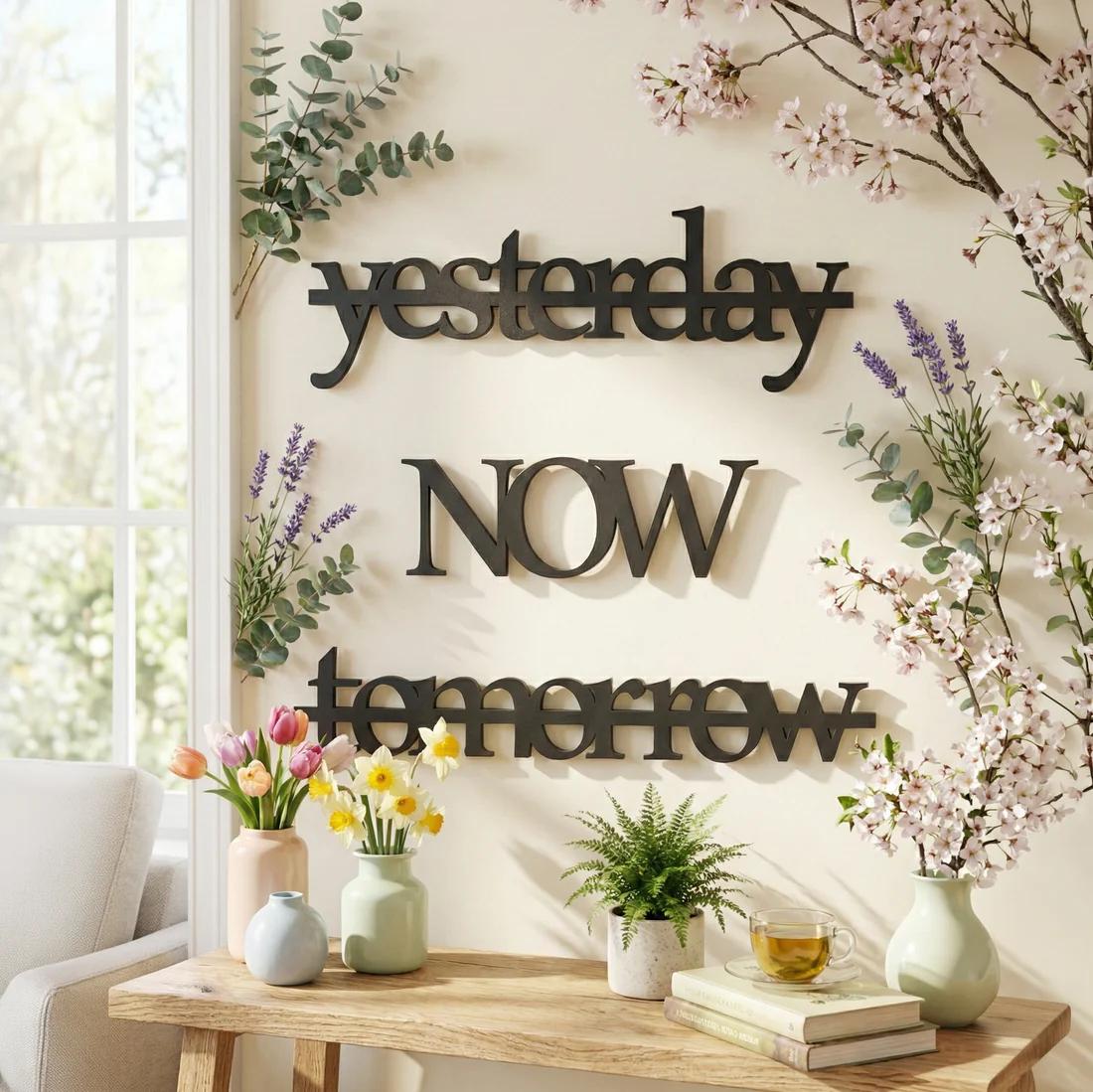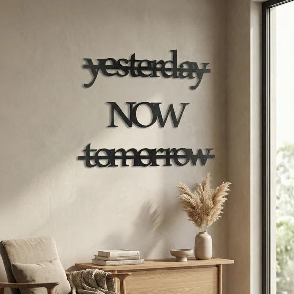 yesterday now tomorrow duvar yazısı, tipografik duvar dekoru, mdf duvar süsü, lazer kesim yazı dekoru, modern duvar yazısı, ingilizce duvar yazısı, minimal duvar dekorasyonu, ofis duvar süsü, salon duvar dekoru, genç odası duvar yazısı, dekoratif yazı tablo, duvar aksesuarları, modern tipografi dekor, ahşap görünümlü duvar yazısı