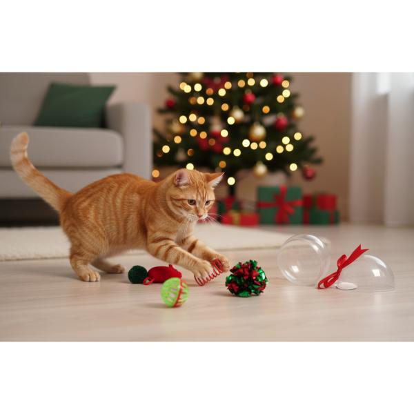 Yılbaşı Konseptli 8 Parça Küre İçinde Oyuncak Seti, kedinizin oyun içgüdüsünü canlandıran renkli ve eğlenceli parçalarıyla hem görsel hem de işlevsel bir oyun deneyimi sunar. Her bir oyuncak, yılbaşı temasına uygun olarak kırmızı–yeşil tonlarında tasarlanmış olup kedinizi harekete geçirecek farklı doku ve şekillere sahiptir. Setin içinde zilli toplar, spiral yay oyuncaklar, ponponlar ve küçük peluş sürpriz parçalar yer alarak kedinizin sıkılmadan uzun süre oyun oynamasını sağlar. Şeffaf küre ambalajı hem şık bir sunum hem de saklama kolaylığı sağlar; ayrıca yılbaşı döneminde hediye alternatifi olarak da ideal bir üründür. Hafif ve dayanıklı malzemelerle üretilen oyuncaklar, kedinizin enerjisini sağlıklı bir şekilde atmasına katkıda bulunur.