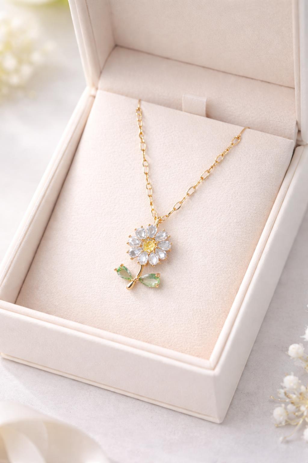 Zirkon Taşlı Çiçek Figürlü Gold Renk Çelik Kolye MODEL 11 – Kararmaz, Şık ve Zarif Tasarım
