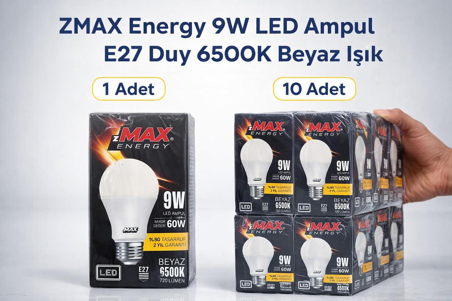 ZMAX Energy 9W LED Ampul E27 Duy 6500K Beyaz Işık 720 Lümen 60W Eşdeğer Enerji Tasarruflu 1 Adet ve 10 Adet Seçenekli